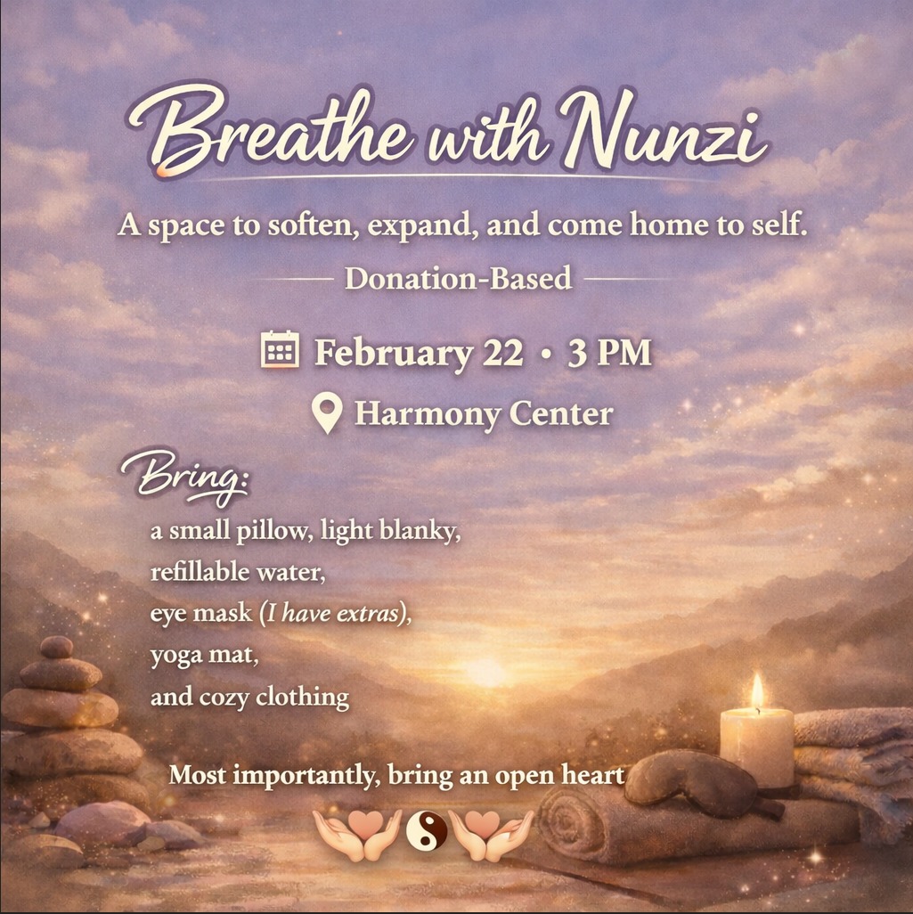 Join us on February 22 at 3pm for Breath with Nunzi in Studio 1.