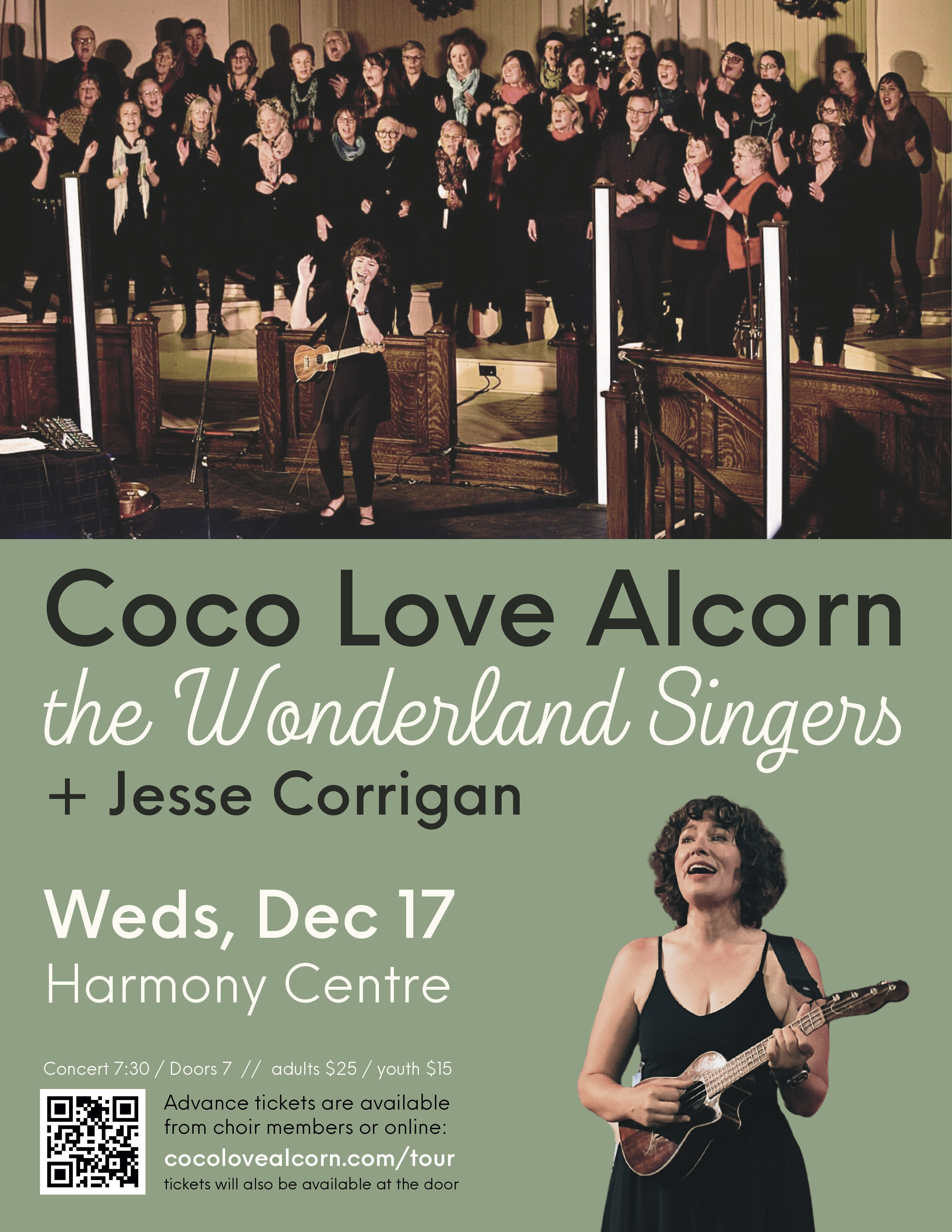 Come join Coco Love Alcorn, The Wonderland Singers and Special guest Jesse Corrigan at the Harmony Centre for this very special concert.