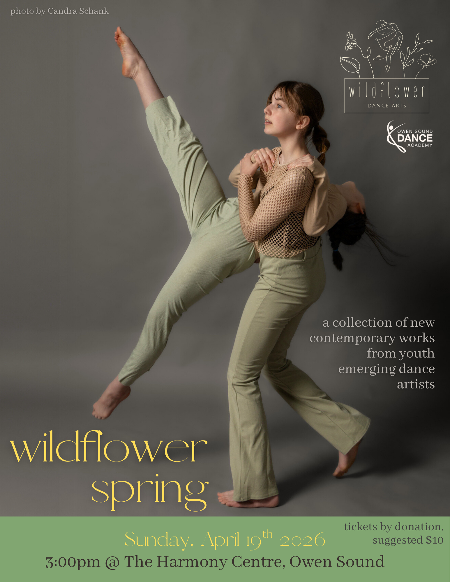 Wildflower Dance Arts and Owen Sound Dance Academy present Wildflower Spring, an exciting showcase of new contemporary works created and performed by youth emerging dance artists.